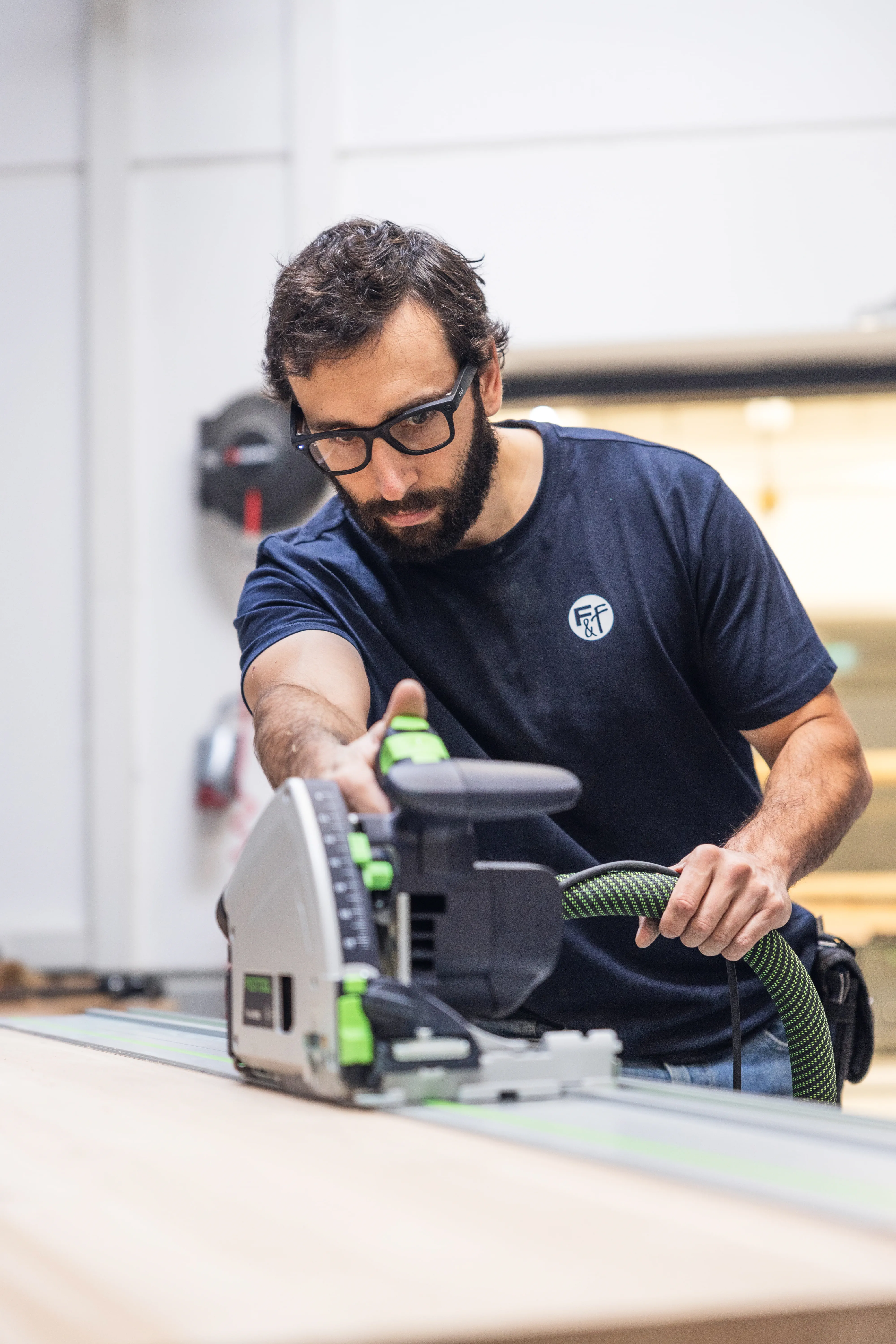 Når syv kreative og talentfulde mennesker fra forskellige lande mødes - plus Festool-værktøj af høj kvalitet og en masse passion - opstår der noget helt særligt. Det var også tilfældet ved vores første Festool & Friends Build-Off event, som fandt sted i Reutlingen i juli 2025. Opgaven var at designe og bygge en fuldt funktionel arbejdsbænk til børn på tre dage. Deltagerne vidste ikke, hvad de kunne forvente på forhånd - og var så meget desto mere motiverede til at udfolde sig kreativt og håndværksmæssigt.