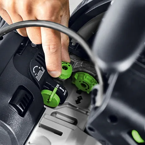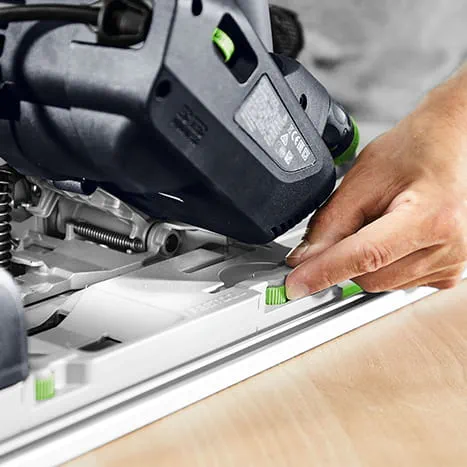 "Det er virkelig praktisk i hverdagen, at selv store plader nu også kan tilskæres præcist og flossefrit på byggepladsen med den nye TSV, så man ikke behøver at udføre dette arbejde på værkstedet. Med vores alsidige systemtilbehør kan man skære som med en stationær maskine. Det er ikke set tidligere i denne form: Mobil og samtidig præcis, flossefri savning efter mål", siger Seyfried. Alt efter anvendelsen kan forridseren tændes og slukkes fleksibelt. Perfekte resultater er især vigtigt, når man tilskærer plader. Og derfor kan den nye forridser-dyksav også bruges med føringsskinnen, som du er vant til hos Festool. TSV 60 K kører helt uden slør på føringsskinnen, som fastgøres med skruetvinger og indstilles med føringsbakkerne uden værktøj. Det sikrer førsteklasses arbejdsresultater.