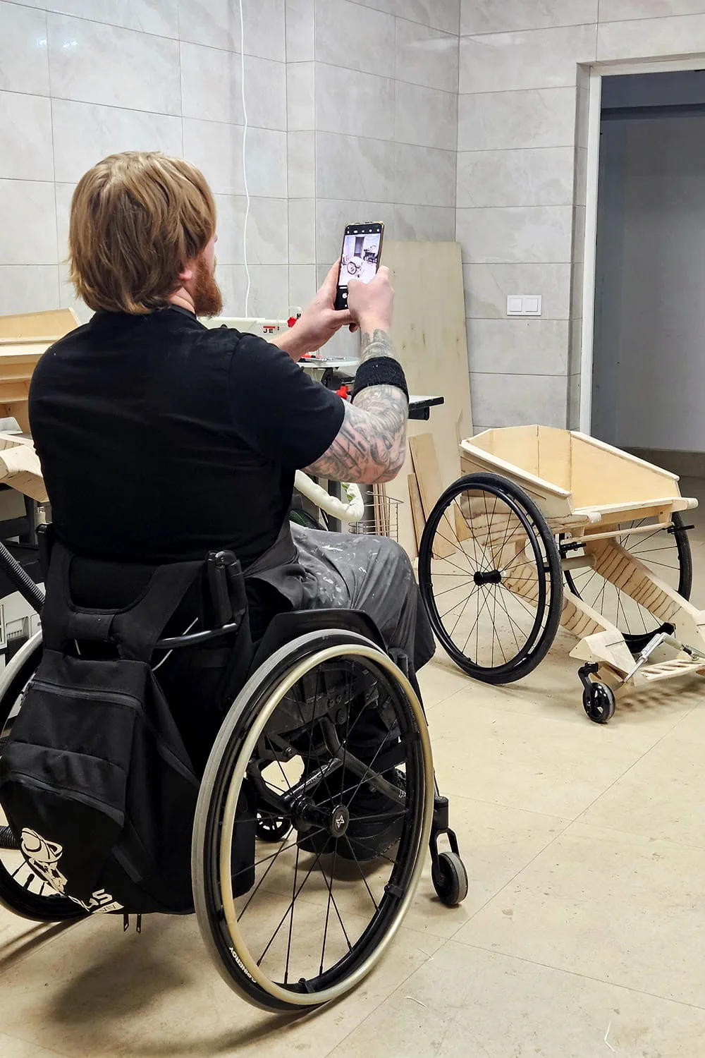 Trin for trin bliver der skabt skræddersyede kørestole af træpaneler og individuelle komponenter. Men målet med projektet er mere end bare et færdigt hjælpemiddel. Arbejdet i værkstedet skal også give deltagerne struktur i deres hverdag, ny motivation og et klart mål.