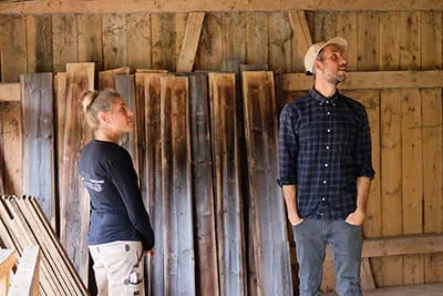 Sammen går vi i retning af deres lager med genbrugstræ. Utallige træbjælker venter her kun på at blive opdaget. "Et gammelt stykke træ er slet ikke nået til slutningen af dets liv", siger Ricarda. "De fleste bjælker stammer fra nedrevne lader. Nogle er adskillige årtier eller endda flere hundrede år gamle." Lisa og Ricarda er på udkig efter særlige træbjælker til deres næste ordre. Det minder næsten om en skattejagt, år de to går gennem deres lager.