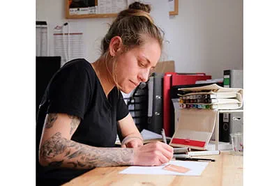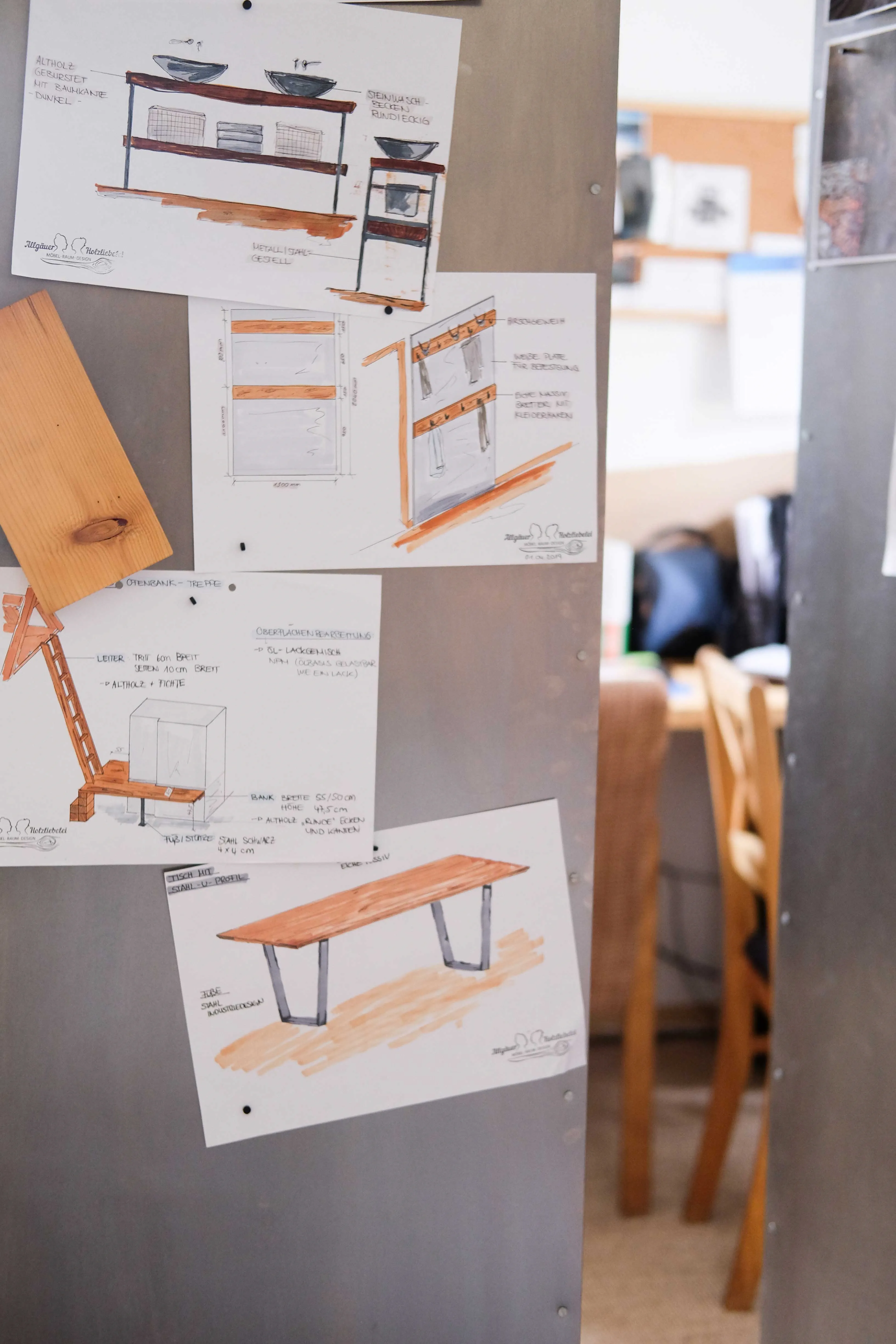 Alle unikaene bliver først til ved skrivebordet. I en skitse bliver ønskemøblet synligt for første gang. "For mig er det et helt særligt øjeblik", indrømmer Ricarda over for os. "Her kan man udfolde al sin kreativitet og samtidig omsætte kundernes ønsker en til en." Lige så forskellige ordrerne er, lige så forskellige er projekternes kompleksitet: "Vores hidtil mest krævende job var byggeriet af et vinlounge-hjørne i et privathjem. Lige nu planlægger vi indretningen af en bar, hvor viudfærdiger hele lokalets design, og senere fremstiller vi de enkelte elementer", fortæller Lisa.
