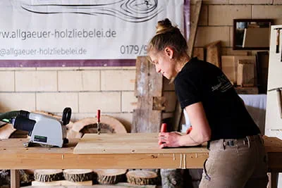 Ricarda, snedkermester hos Allgäuer Holzliebelei