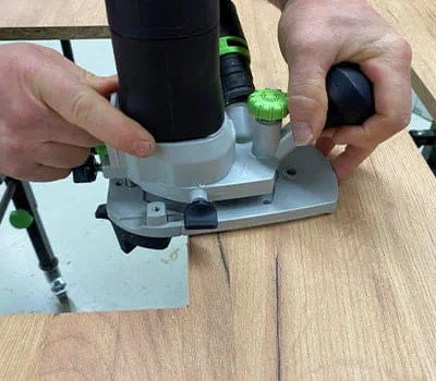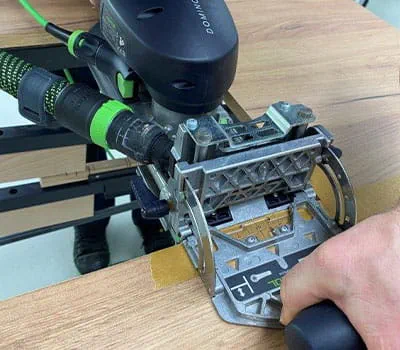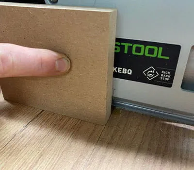 I dette tilfælde passer 12 mm fræseren til samlingsfræseren perfekt. Man kan selvfølgelig også fræse hullerne til hængslerne med en overfræser.