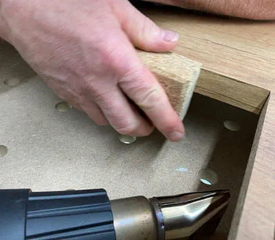 Montering af tyndt kantbånd på lemmen og bordets indvendige kanter