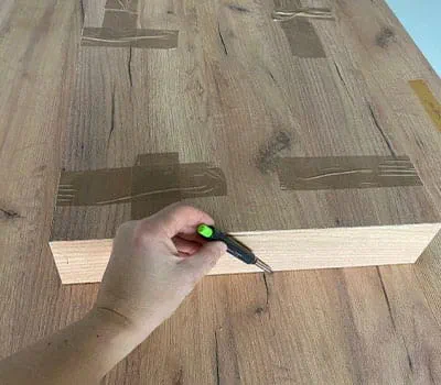Marker hvor hængslerne skal monteres på bordet og lemmen.
