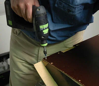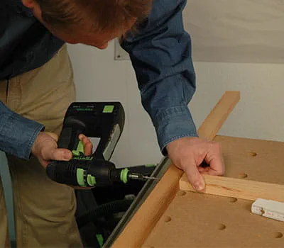 Når rammerne til underkonstruktionen er skruet sammen, lægger du de indvendige beklædninger (pos. 2,7,13) på. Fiksér pladerne med tvinger, og bor hullerne til skruerne. Skru pladerne på underkonstruktionen med Spax (3,5 x 20 mm).