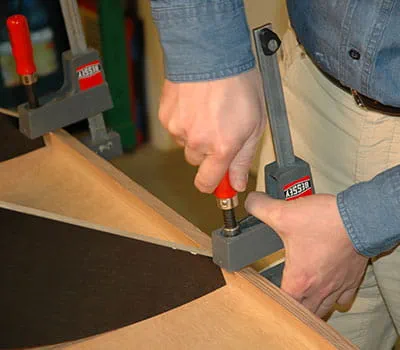 Rul underkonstruktionen af med tryk på beklædningen, og fiksér den først i midten og derefter på den anden afslutningsliste med tvinger. For at opnå et godt resultat skal der anbringes så mange tvinger som muligt. Hvis der kan konstateres spalter efter tørringen, skal disse tætnes med silikone inde i taget.