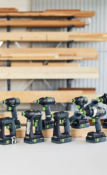 Festools akku-skruemaskiner passer perfekt ind i systemet. Vores systemtilbehør som f.eks. hurtigskiftesystem, Vinkelforsats, Excenterforsats, Dybdeanslag, batterier, batteriladere, bits og bor til en lang række anvendelser gør dit arbejde med en Festool akku-skruemaskine endnu mere effektivt.
