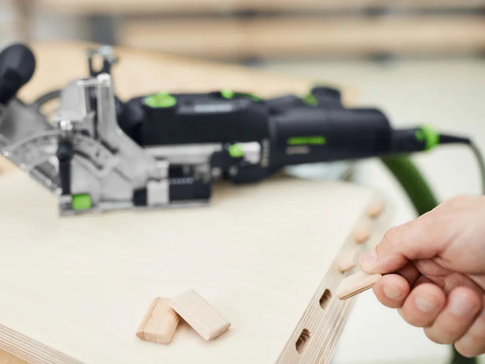 Hver træfuge har sine fordele. Samlingssystemet DOMINO, der består af en Samlingsfræser og DOMINO dyvler, kombinerer dem alle. Den unikke pendulfræsning på DOMINO fræser præcise, vridningssikre slidsede huller. DOMINO-dyvlen kombinerer stabiliteten ved tappesamlinger med fleksibiliteten ved flade dyvler. Ideel til filigrane eller massive arbejdsemner indendørs og udendørs.